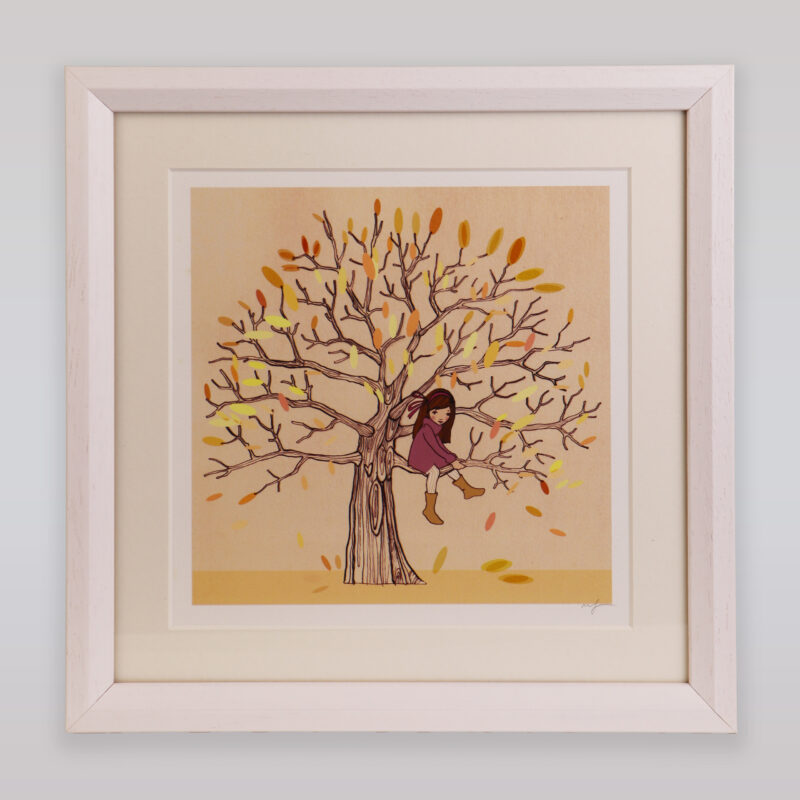 Decorative, beautiful and detailed print of Belle & Boo’s My Favorite Spot Autumn Art Print signed by Belle & Boo creator Mandy Sutcliffe. Perfect for both the children’s room, the hallway, the office, the cabin, the basement and the loft! Printed on 100% cotton paper and a passepartout is included.
